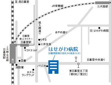 荒川区東日暮里、日暮里駅徒歩5分の泌尿器科・腎臓内科、人工透析 はせがわ病院